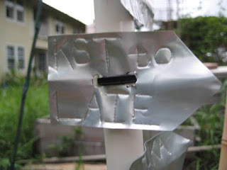 I used leftover materials, so there are a few less-than-ideal shortcuts that will shorten its lifespan. I used Zn-steel bolts instead of stainless steel through the connection between the two PVC pipes (the bolts are too long); instead of Al bolts through the aluminum signs, I used UV resistant zip ties (and I should have fed the zip ties through the holes parralell ot the aluminum signs); the top section of the pole is too short.